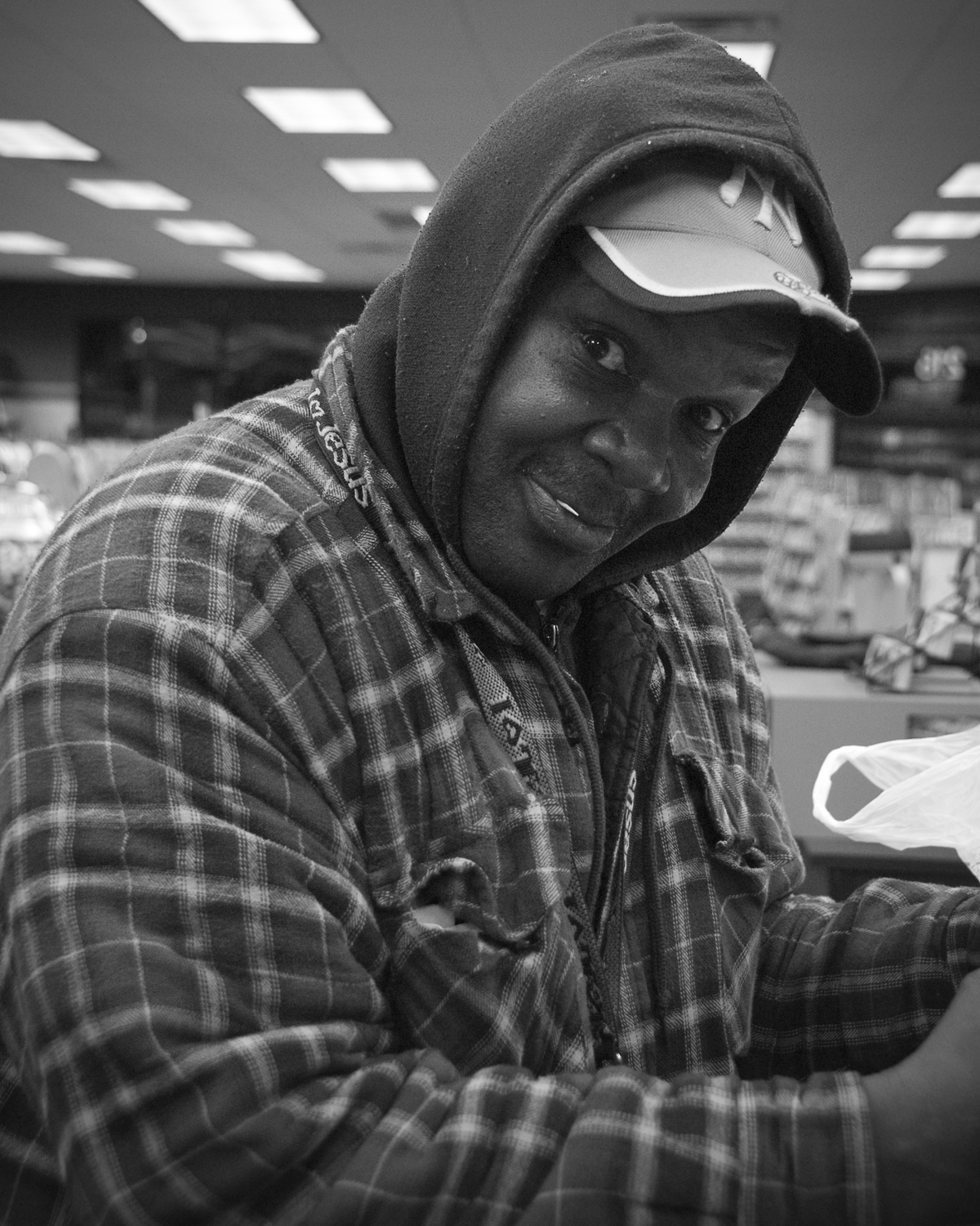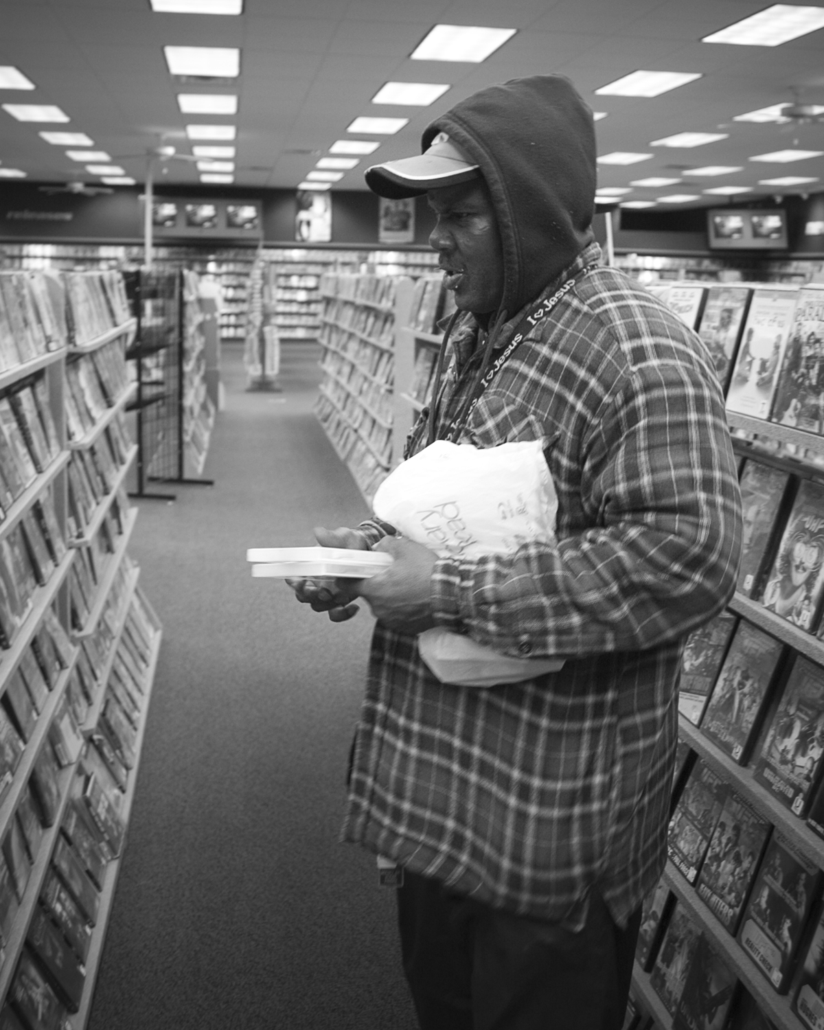 This is a photo story about a customer at my place of work, Family Video. His name is Maurice. Working in customer service, particularly in a video store, brings out all kinds of different people. There are always memorable customers and Maurice is perhaps, my most memorable to date. Maurice is a man full of character and there is no doubt that I will usually come home with some sort of story about Maurice every time I see him. This particular story shows a side of Maurice that as employees, we don’t always appreciate. For the longest time Maurice would come into the store a few minutes before, and sometimes even after midnight hoping to get movies. It would set back our closing procedures and most of the time we wouldn’t get home until around 1am. We tried talking to him time after time, and even had managers explain to him our closing policy. He still didn’t really get it and I don’t think he ever will. So we have all just sort of accepted the fact that come 5 minutes til midnight, you should expect Maurice.