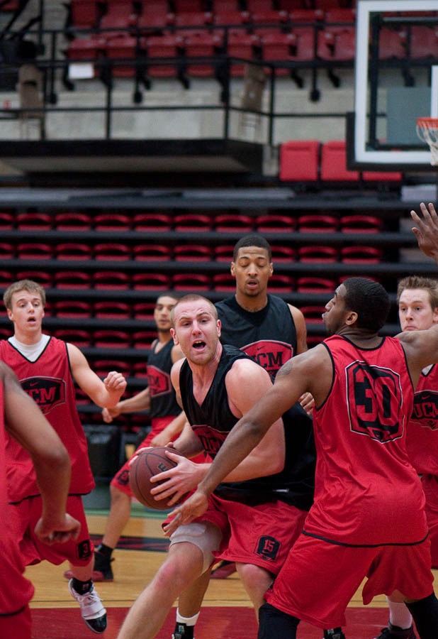 On February 2nd, 2010 our editorial photography class went to photograph the University of Central Missouri Men’s Basketball team practice. The guys were intense and moved very fast, so it could be at times a challenge to get the right shot with my given equipment. Here are some of what I believe were my best shots of the practice!