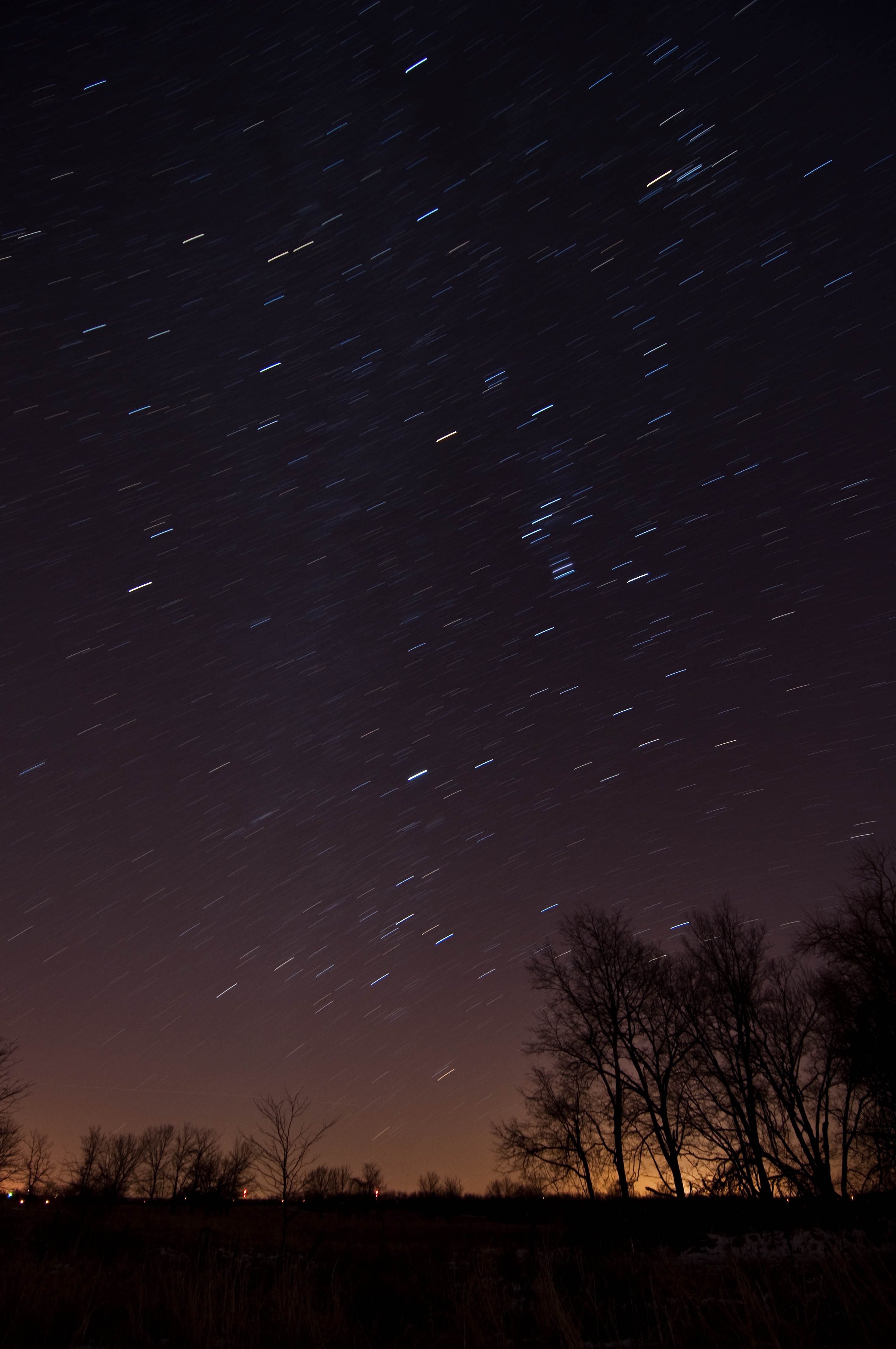 I went out this past Wednesday with UCM’s Photo Society to photograph star trails. One student happened to have a massive amount of land which we wandered around looking for a good spot to set up and shoot. I have never photographed star trails before so this was a first for me. I thoroughly enjoyed the experience. It was very peaceful. I can’t wait until it warms up a bit so I can go out and explore more. Most of these images are about a 20 minute exposure or so. I tried making a 45 minute exposure but my shutter release stopped after 20 min. I am curious if my camera will only go that far with the remote cable release…looks like I have some manual reading to do.