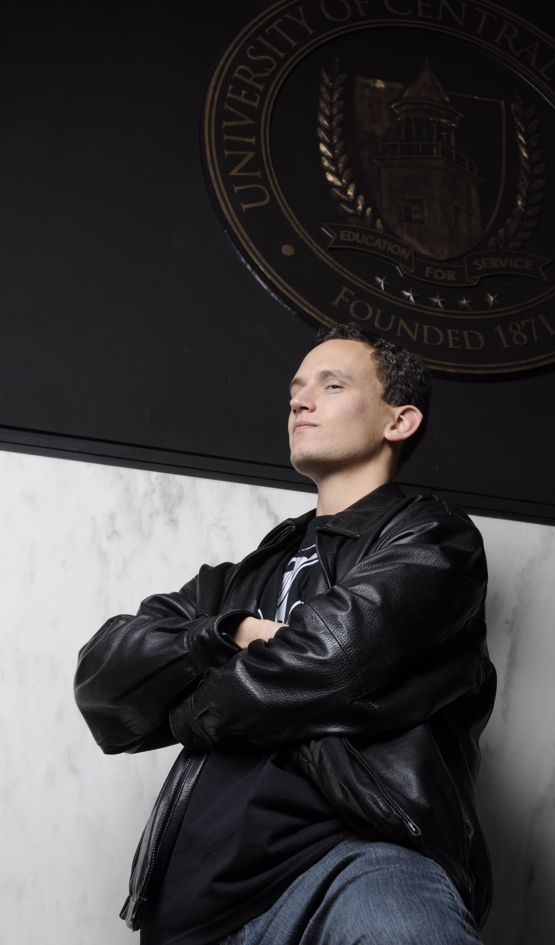 Last Tuesday in my Editorial class we learned briefly how to use Alien Bee lighting equipment.  I’ve never worked with Alien Bees before so it was a very new experience for me. Our first location was one of the theaters on campus, but after just a few shots a local news crew came in to do an interview so we had to change locations. We moved outside the theater and chose to shoot against the UCM emblem. Here are a few of my shots that I thought demonstrated different use of the lights and fun poses.