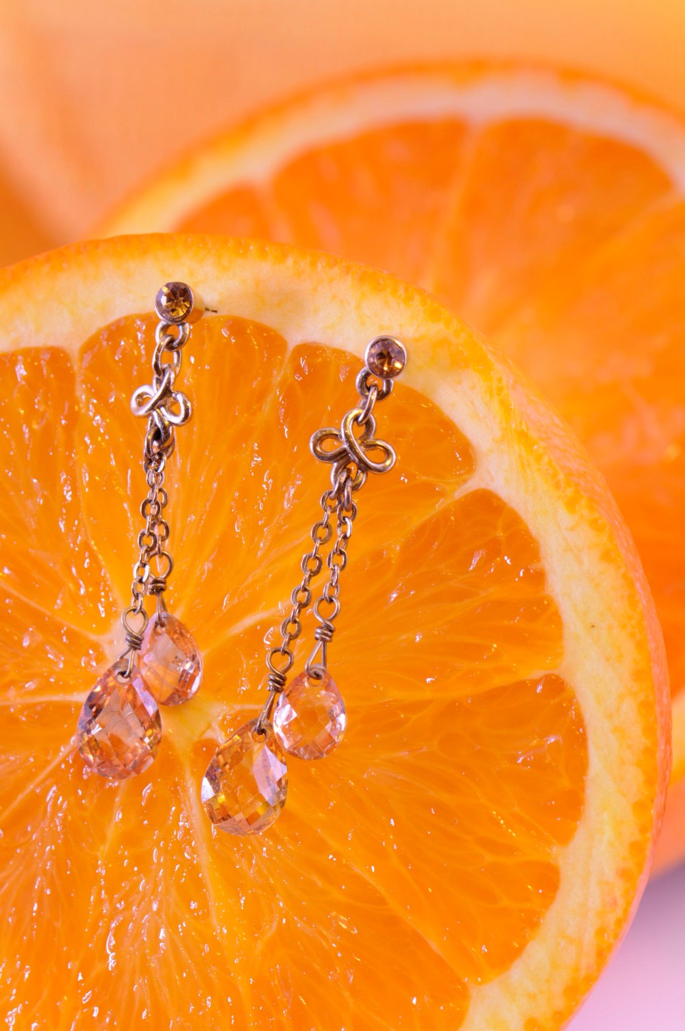 I really like the earrings/orange combination. Gorgeous!