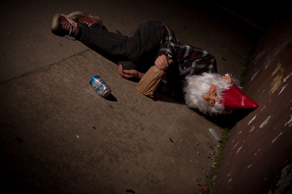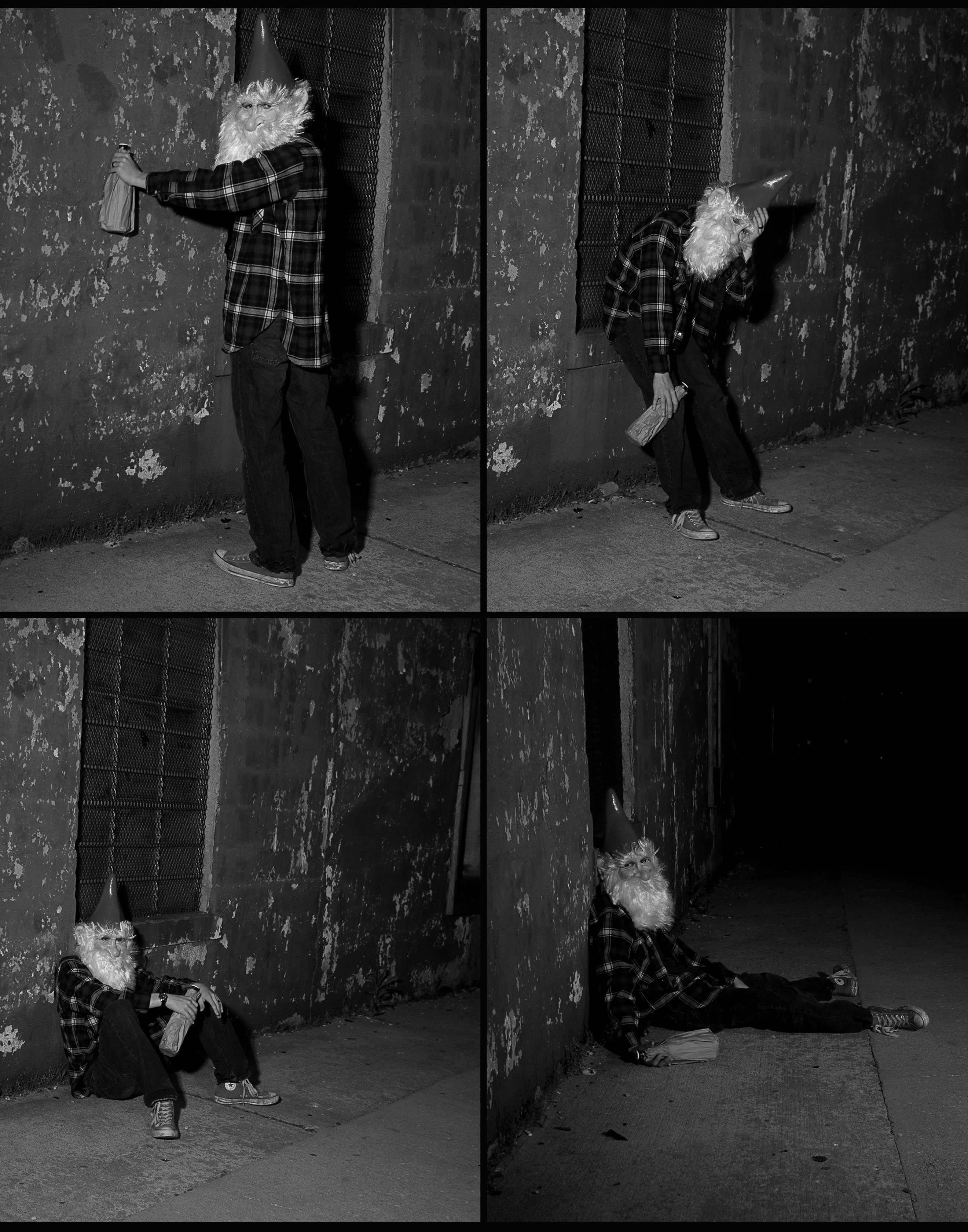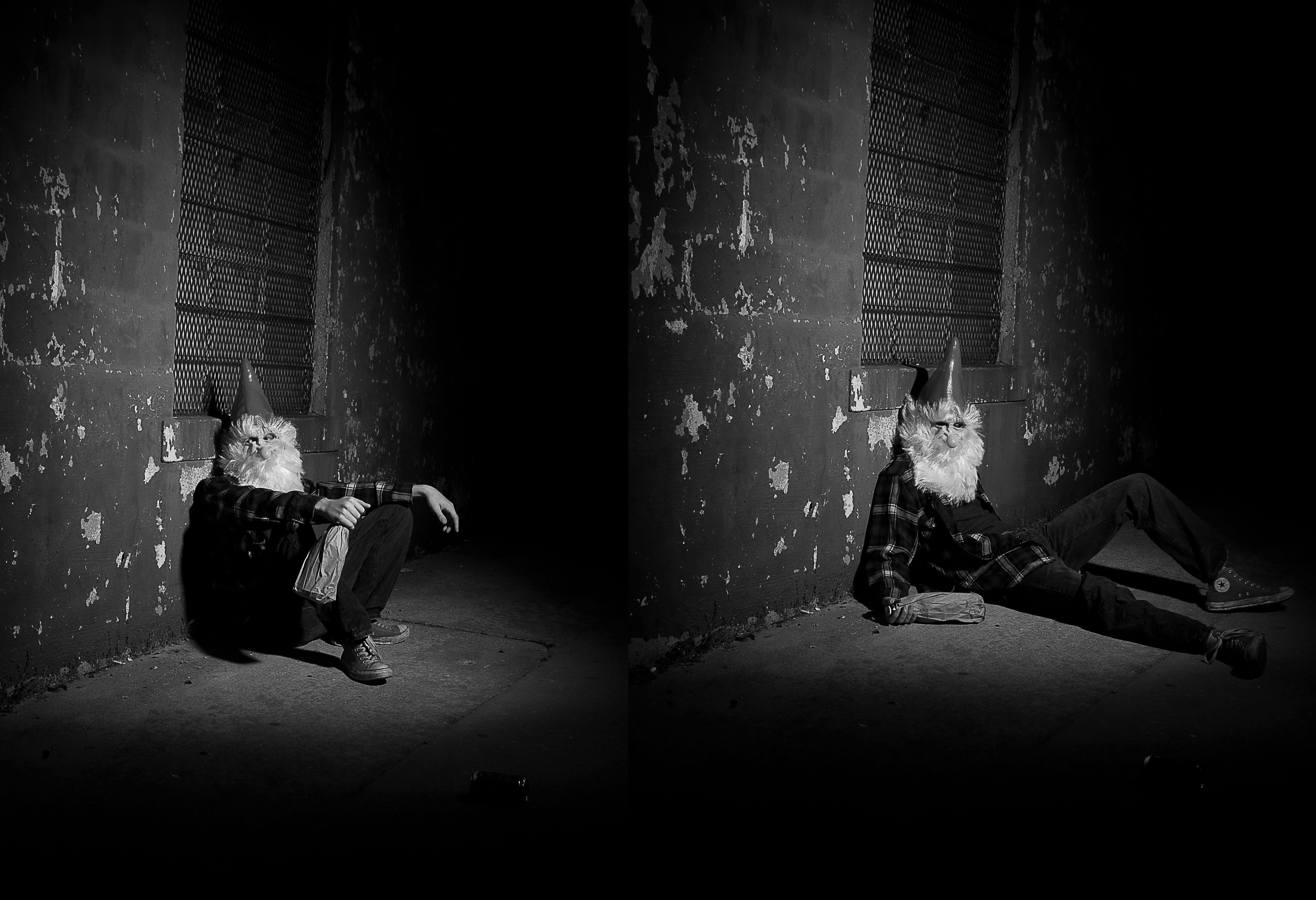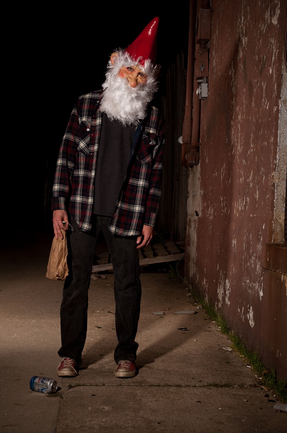 I had the opportunity to flex my creative muscles while shooting a drunk gnome series with my husband this Wednesday. We found an interesting alley behind all the pine street bars and decided to use the texture of the brick along with the broken beer bottle glass and random trash to set up a scene for a belligerent gnome to stumble around in. I used 2 alien bee’s with a grid spot to create a very harsh vignetted lighting to give an uncomfortable, gritty aesthetic. I couldn’t decide upon whether or not I liked the images as a set in black and white, or in color. I feel like a gnome’s red hat should always be present–but I think color toning is tacky. It has to be one or the other–help me decide? Anyway… enjoy them. I plan to revisit this concept as I have more ideas that I wasn’t able to execute.