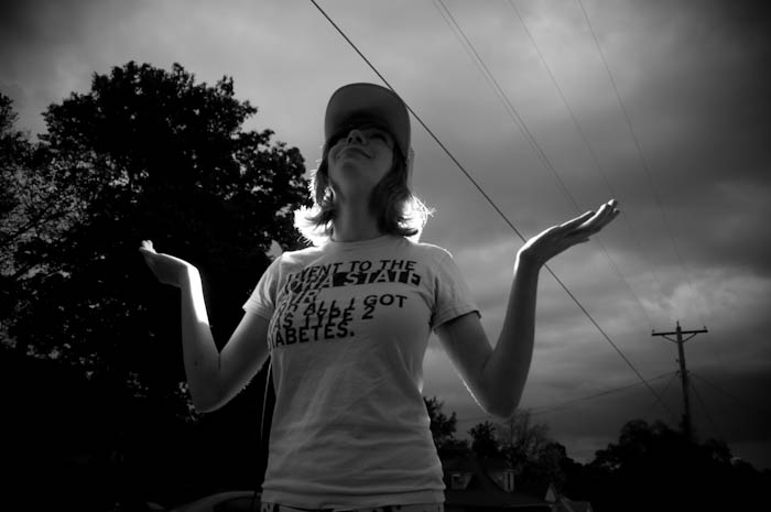 One of the things that drew me to my best friend, Holly Hildreth was her unique style and even more unique sense of humor. After several failed photo shoots for sports and events, I was trying to figure out what I could do for my last assignment. I thought about doing another fashion shoot-using holly with her funny sayings t-shirts. We started out with this idea in mind but then it quickly turned into my representation of the humor that I find in our friendship every day. Holly plays the banjo and several other what she calls “awkward” instruments, she also is from Waverly, Iowa a place which she often claims is awkward. So my final production was an awkward photoshoot of Holly with her awkward banjo and tshirts. Here are 5 of my favorite photos from the shoot. To see the entire collection check out my Flickr by clicking here.