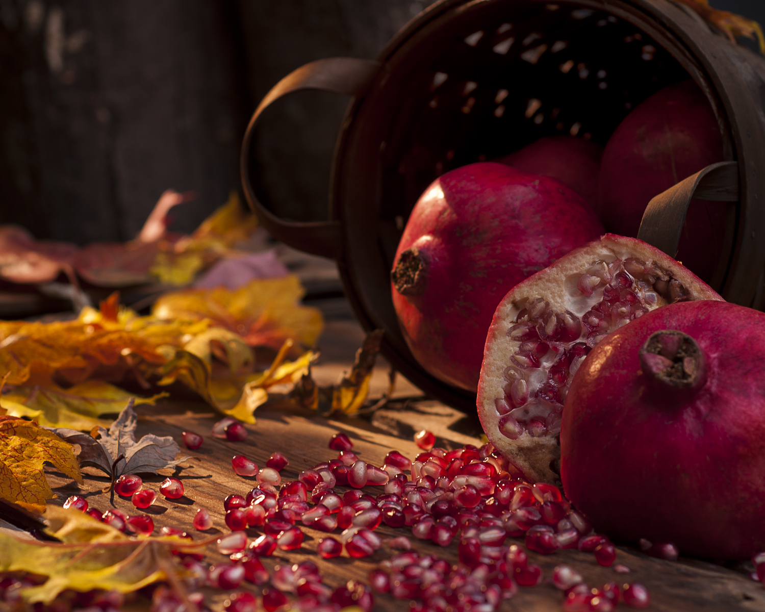 I like the first one. I like getting a peak of the inside of pomegranate!