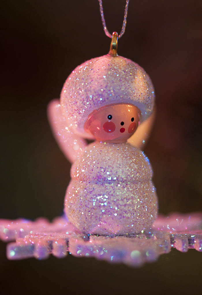 I haven’t been able to sleep real well the past few weeks. I don’t know if its because of the cold/sickness I can’t seem to beat, or if it is because of something else. Instead of sleeping I decided to sit by my Christmas tree, absorbing the colors and sparkles, wishing that the first of January wasn’t just around the bend. I’ll have to carefully pack away all my Christmas goodies in their proper boxes for next year. I wanted to take some photographs of a couple of my ornaments just to keep in the photographic mindset and to enjoy my tree even more before it has to get put away.