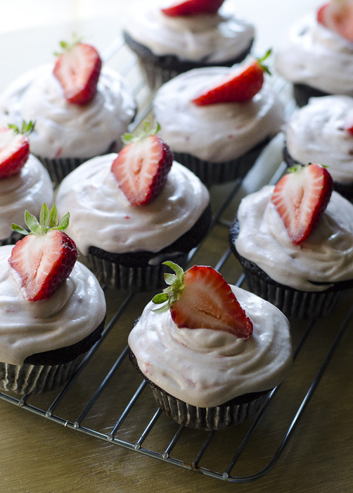 Chocolate Cupcakes w/ Strawberry Cream Cheese Frosting