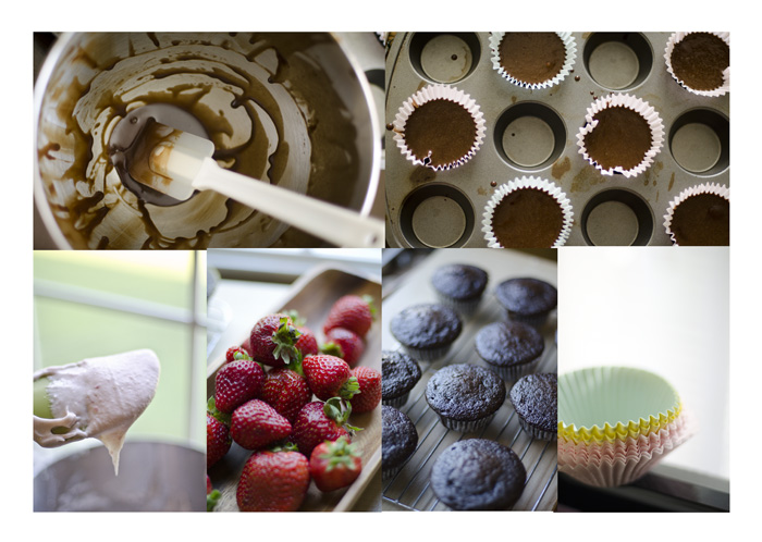 Tomorrow marks my three year wedding anniversary with my husband Chet! To celebrate I made some delicious cupcakes for us to enjoy tomorrow night after our home cooked stir fry dinner! I will post the recipe for both the cupcakes and the frosting. I originally came across them from http://glorioustreats.blogspot.com/–but I tweaked here and there. She has some wonderful posts which you should all checkout.