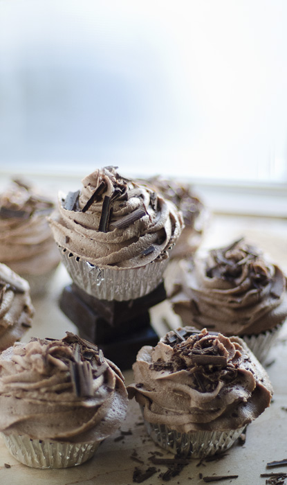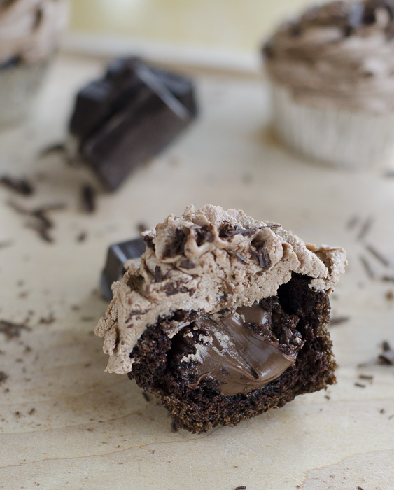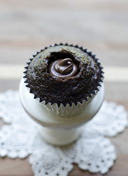 After seeing what delicious dinner I had awaiting me, I decided that it needed to be paired with an equally delicious birthday dessert. Now, as I’ve gotten older for some reason I have become somewhat disinterested with traditional birthday cakes. I wanted to make something a little more complex. I decided to try out some chocolate cupcakes with Nutella filling and Nutella frosting. I know, sounds pretty darn rich, and you’re right. These babies are packed full of flavor and chocolatey goodness. It is the kind of cupcake you only need one of and a tall glass of ice cold milk beside you while you eat it. Of course, I can’t make such a decadent treat without photographing it. Enjoy the photos and do try the recipe sometime for yourselves!