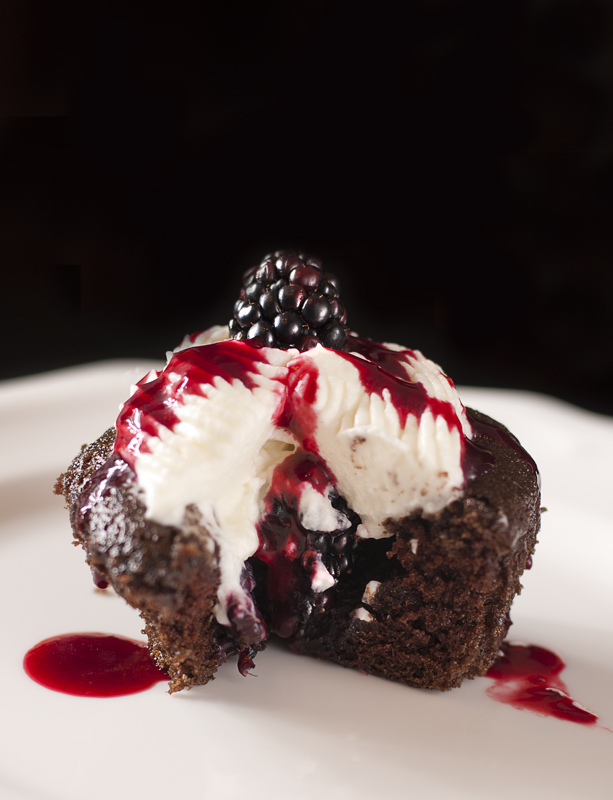 I thought these cupcakes might be a bit rich, but they are surprisingly light and the acid from the fruit truly compliments the chocolate and cream flavors. I garnished the cakes with a blackberry on top and then drizzled homemade blackberry sauce as a colorful accent. Yum. so good!! This is just one of my many food projects I plan to develop in the coming months!Β  Enjoy the images. Give me a shout if you’d like the recipe!