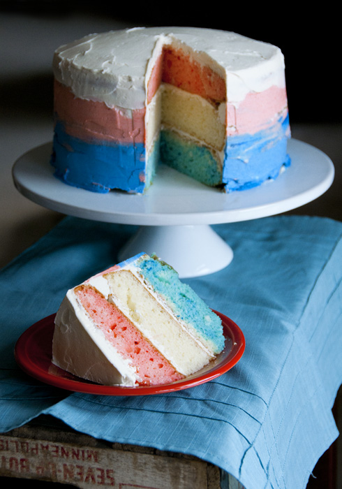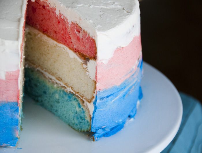 In addition to the perks of living near the fireworks show, I tried for the first time ever, to make a three layer multicolored cake. The multicolor of the cake turned out really well and I was proud of myself! I also tried a new method of frosting which was supposed to be a three color blended effect, but I don’t think I did it all that successfully. I blame it on not having quite enough frosting left over after assembling the cake and putting my crumb coat on. I also didn’t feel like going to the store and getting more ingredients to make more frosting, so as they say, beggars can’t be choosers. Regardless of how it looks, it tasted DAMN good. Made a new frosting courtesy of a blogger I follow SWEETAPOLITA . This stuff is good. Follow that link and next time you need to make a cake or some cupcakes, I highly recommend you use that frosting!!!
