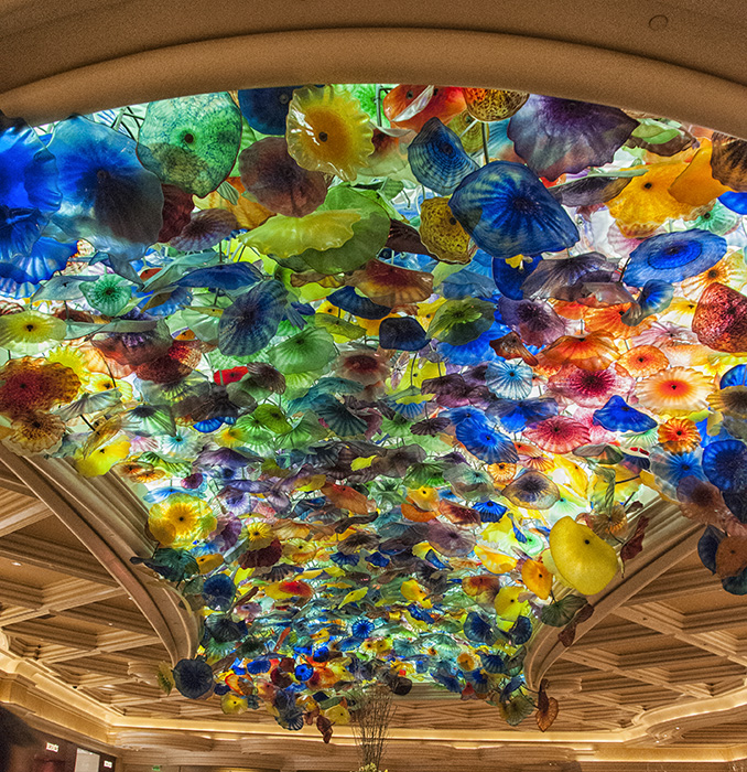 Glass sculptures on the ceiling in the lobby of the Belagio