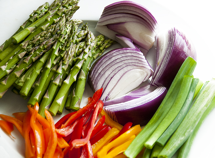 Combine in a Ziploc bag, add your steaks and let sit refrigerated for at least four hours, rotating sides after 2 hours. Meanwhile, prep your veggies. I used asparagus, yellow, orange and red peppers, purple onion, and green onions. You could also use zucchini or squash, cut into very thin straws. If you choose to do veggies that may need more cooking time, it might be a good idea to steam them just a bit before grilling. I don’t mind a bit of crunch to my asparagus so I chose not to steam, though for some it may be a good idea. Be sure that you cut your veggies into thinner strips so they are easily rolled.